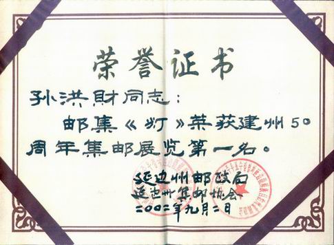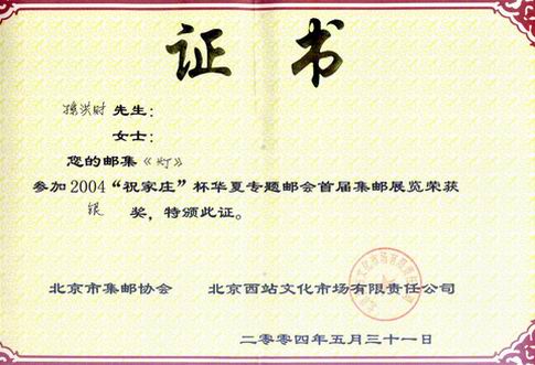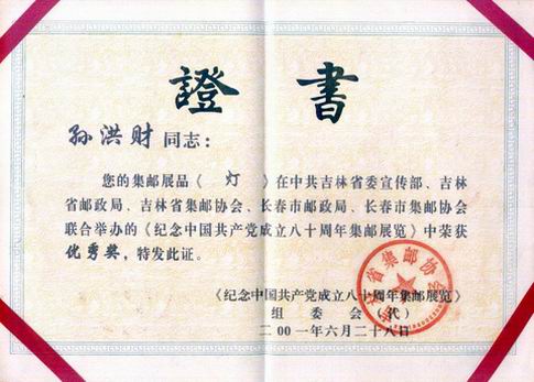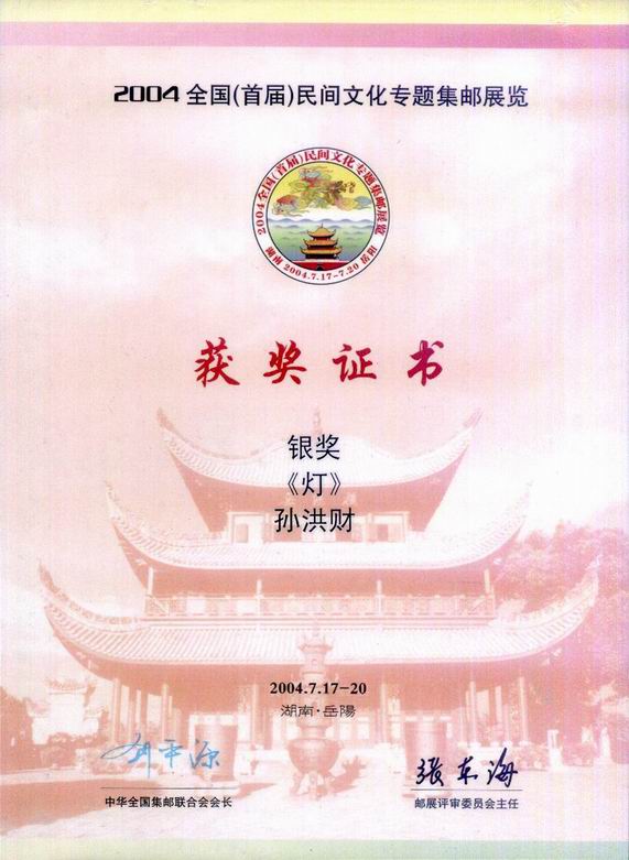二OO四年全国(首届)民间文化专题邮展(湖南岳阳)吉林孙洪财(银奖,74分,80个贴片)